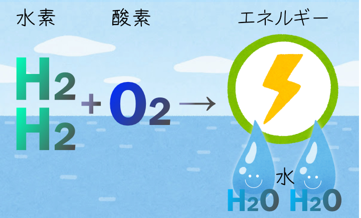 水素を酸素を化学的に結びつけることで、熱や電気といった大きなエネルギーを取り出せます。