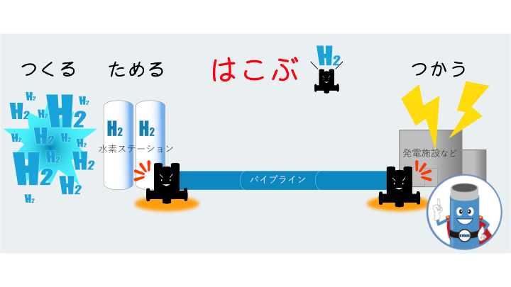 今回開発の「水素ガス対応全溶接型埋設式スチール弁」は主に水素ステーションから発電施設などを結ぶパイプラインに設置される予定です。